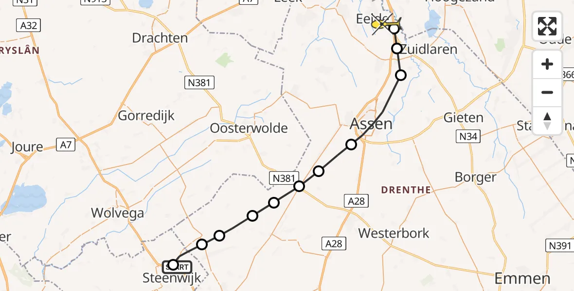 Op dinsdag 15 juli 2025 om 13:53 is er een Traumahelikopter vertrokken van Steenwijk naar Groningen Airport Eelde. Het gaat om de Traumahelikopter met registratienummer PH-DOC. De vlucht duurde 14 minuten. Het toestel heeft in die periode 54 kilometer afgelegd met een gemiddelde snelheid van 238 kilometer per uur op een maximale vlieghoogte van 290 meter.