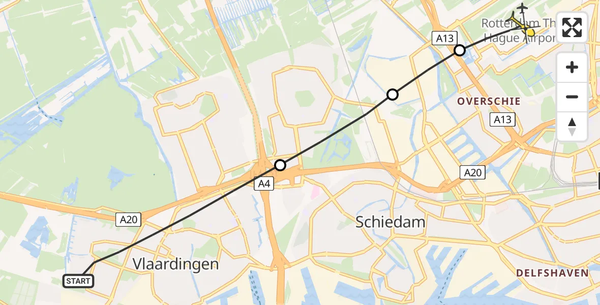 Op donderdag 17 juli 2025 om 21:37 is er een Traumahelikopter vertrokken van Vlaardingen naar Rotterdam The Hague Airport. Het gaat om de Traumahelikopter met registratienummer PH-MAA. De vlucht duurde 5 minuten. Het toestel heeft in die periode 10 kilometer afgelegd met een gemiddelde snelheid van 132 kilometer per uur op een maximale vlieghoogte van 236 meter.