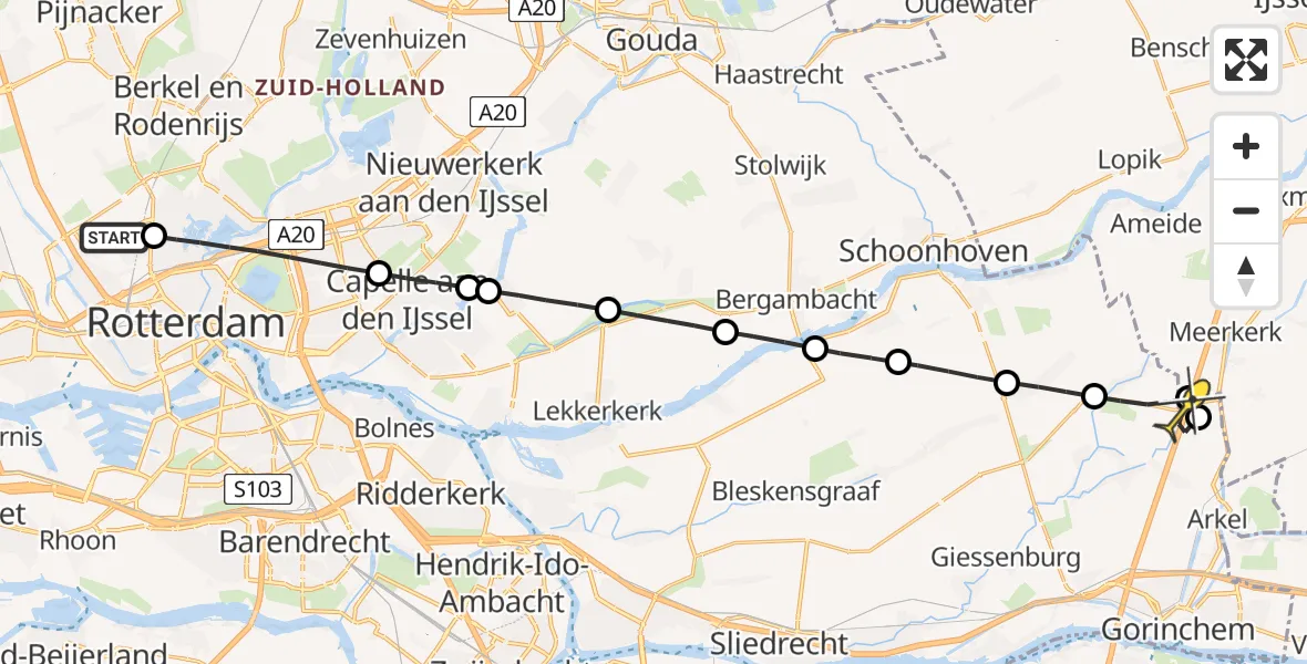 Op donderdag 17 juli 2025 om 22:33 is er een Traumahelikopter vertrokken van Rotterdam The Hague Airport naar Hoogblokland. Het gaat om de Traumahelikopter met registratienummer PH-MAA. De vlucht duurde 14 minuten. Het toestel heeft in die periode 40 kilometer afgelegd met een gemiddelde snelheid van 172 kilometer per uur op een maximale vlieghoogte van 343 meter.