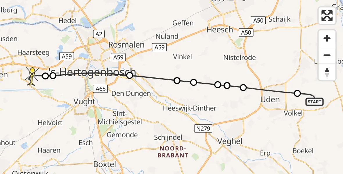 Op donderdag 17 juli 2025 om 22:52 is er een Traumahelikopter vertrokken van Vliegbasis Volkel naar Vlijmen. Het gaat om de Traumahelikopter met registratienummer PH-LLN. De vlucht duurde 11 minuten. Het toestel heeft in die periode 36 kilometer afgelegd met een gemiddelde snelheid van 205 kilometer per uur op een maximale vlieghoogte van 373 meter.