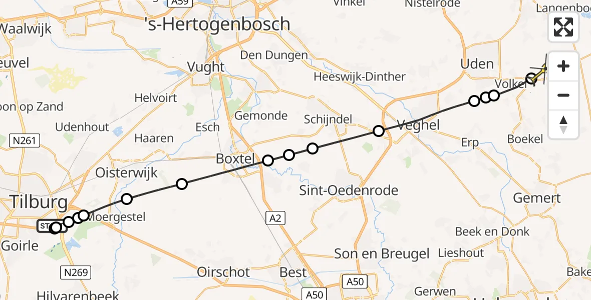 Op vrijdag 18 juli 2025 om 13:36 is er een Traumahelikopter vertrokken van Tilburg naar Vliegbasis Volkel. Het gaat om de Traumahelikopter met registratienummer PH-LLN. De vlucht duurde 13 minuten. Het toestel heeft in die periode 43 kilometer afgelegd met een gemiddelde snelheid van 202 kilometer per uur op een maximale vlieghoogte van 358 meter.