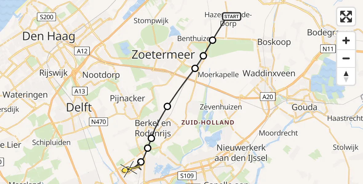Op vrijdag 18 juli 2025 om 15:26 is er een Traumahelikopter vertrokken van Hazerswoude-Dorp naar Rotterdam The Hague Airport. Het gaat om de Traumahelikopter met registratienummer PH-MAA. De vlucht duurde 6 minuten. Het toestel heeft in die periode 20 kilometer afgelegd met een gemiddelde snelheid van 187 kilometer per uur op een maximale vlieghoogte van 282 meter.
