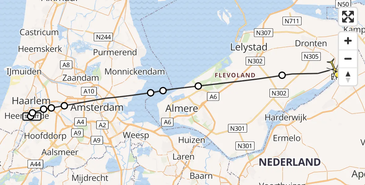 Op vrijdag 18 juli 2025 om 18:26 is er een Traumahelikopter vertrokken van Haarlem naar Dronten. Het gaat om de Traumahelikopter met registratienummer PH-TTR. De vlucht duurde 22 minuten. Het toestel heeft in die periode 81 kilometer afgelegd met een gemiddelde snelheid van 227 kilometer per uur op een maximale vlieghoogte van 297 meter.