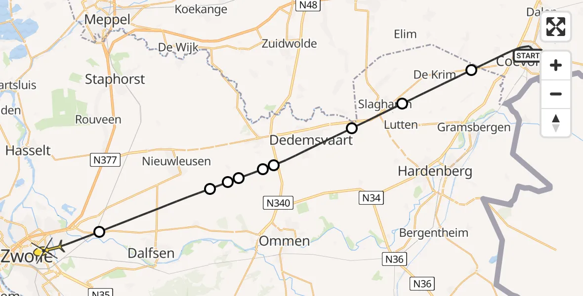 Op zaterdag 19 juli 2025 om 4:28 is er een Traumahelikopter vertrokken van Coevorden naar Zwolle. Het gaat om de Traumahelikopter met registratienummer PH-DOC. De vlucht duurde 14 minuten. Het toestel heeft in die periode 47 kilometer afgelegd met een gemiddelde snelheid van 197 kilometer per uur op een maximale vlieghoogte van 427 meter.