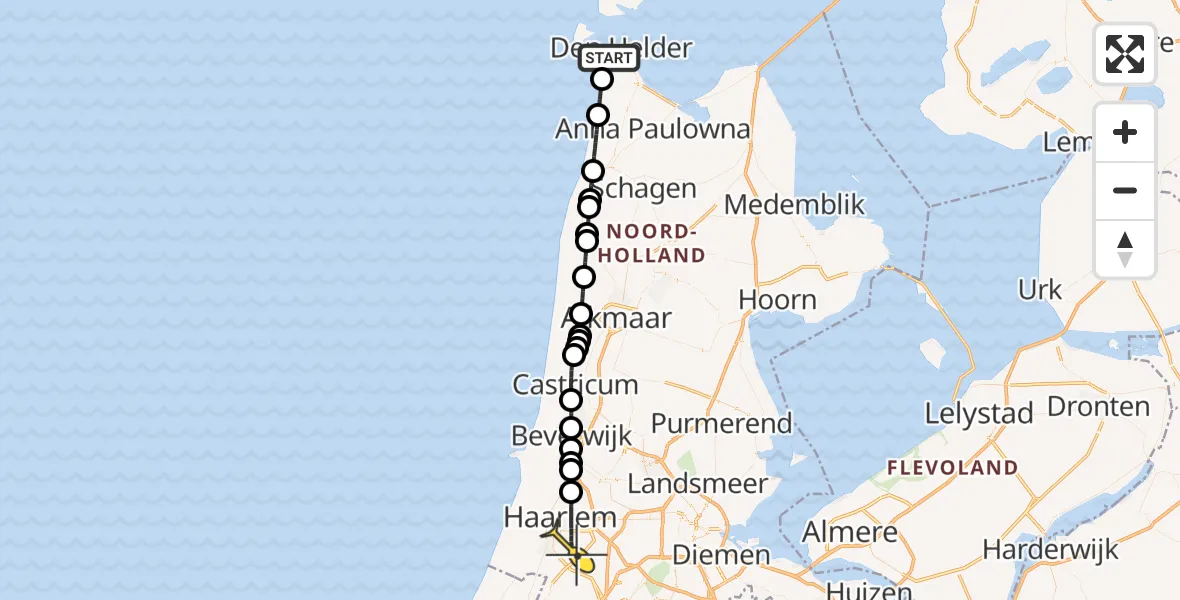 Op zaterdag 19 juli 2025 om 7:13 is er een Traumahelikopter vertrokken van Den Helder naar Haarlem. Het gaat om de Traumahelikopter met registratienummer PH-TTR. De vlucht duurde 20 minuten. Het toestel heeft in die periode 70 kilometer afgelegd met een gemiddelde snelheid van 212 kilometer per uur op een maximale vlieghoogte van 343 meter.