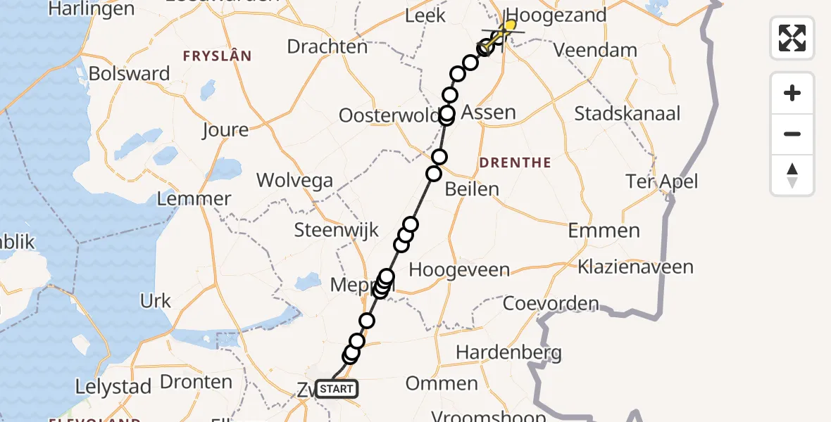 Op zaterdag 19 juli 2025 om 7:52 is er een Traumahelikopter vertrokken van Zwolle naar Groningen Airport Eelde. Het gaat om de Traumahelikopter met registratienummer PH-DOC. De vlucht duurde 22 minuten. Het toestel heeft in die periode 78 kilometer afgelegd met een gemiddelde snelheid van 217 kilometer per uur op een maximale vlieghoogte van 488 meter.