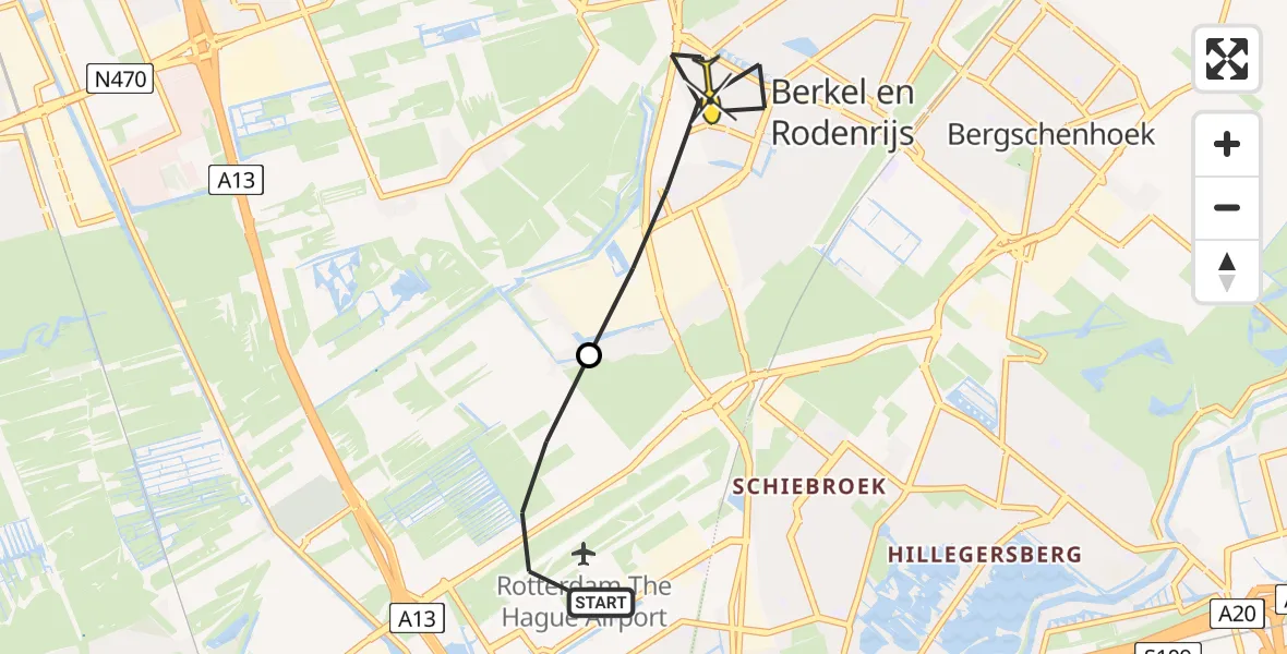Op zaterdag 19 juli 2025 om 19:27 is er een Traumahelikopter vertrokken van Rotterdam The Hague Airport naar Berkel en Rodenrijs. Het gaat om de Traumahelikopter met registratienummer PH-MAA. De vlucht duurde 8 minuten. Het toestel heeft in die periode 8 kilometer afgelegd met een gemiddelde snelheid van 64 kilometer per uur op een maximale vlieghoogte van 381 meter.
