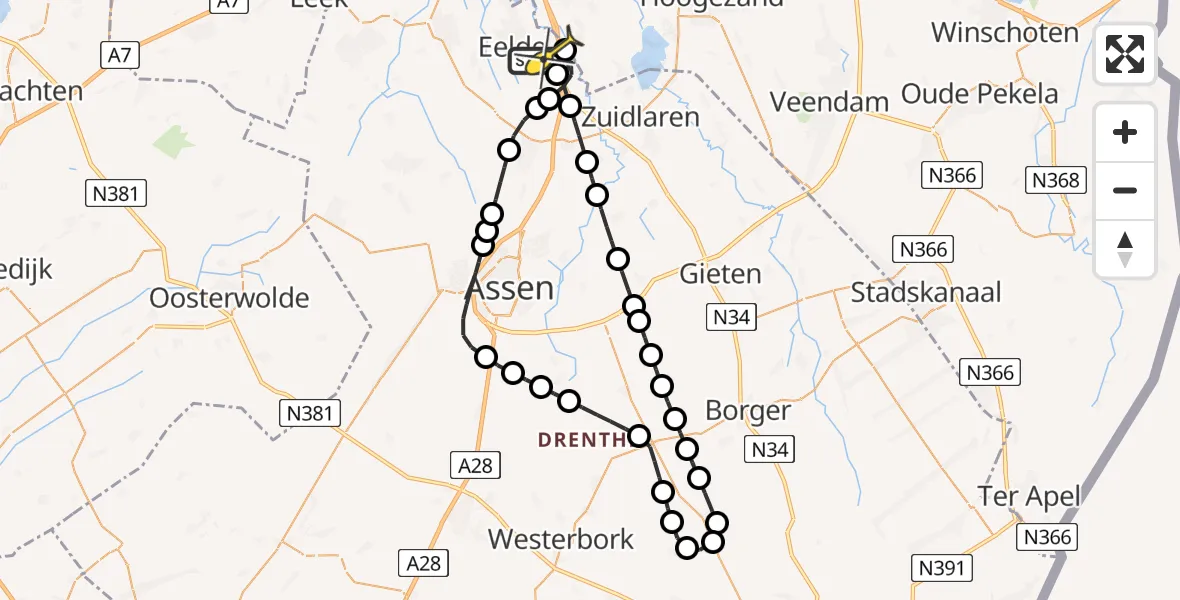 Op vrijdag 25 juli 2025 om 23:22 is er een Traumahelikopter vertrokken van Groningen Airport Eelde naar Eelde. Het gaat om de Traumahelikopter met registratienummer PH-DOC. De vlucht duurde 28 minuten. Het toestel heeft in die periode 78 kilometer afgelegd met een gemiddelde snelheid van 168 kilometer per uur op een maximale vlieghoogte van 274 meter.