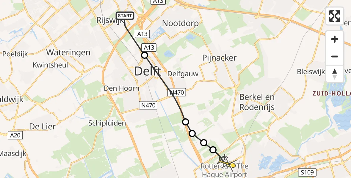 Op zaterdag 26 juli 2025 om 7:28 is er een Traumahelikopter vertrokken van Rijswijk naar Rotterdam The Hague Airport. Het gaat om de Traumahelikopter met registratienummer PH-UMC. De vlucht duurde 5 minuten. Het toestel heeft in die periode 13 kilometer afgelegd met een gemiddelde snelheid van 166 kilometer per uur op een maximale vlieghoogte van 290 meter.