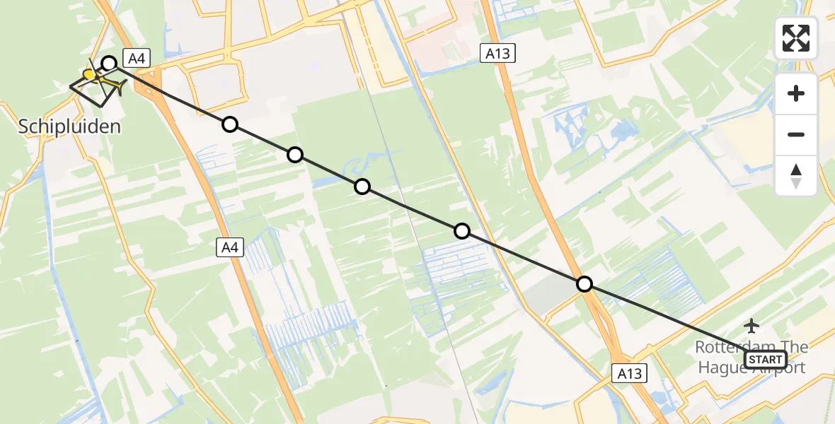 Op zaterdag 26 juli 2025 om 12:50 is er een Traumahelikopter vertrokken van Rotterdam The Hague Airport naar Schipluiden. Het gaat om de Traumahelikopter met registratienummer PH-UMC. De vlucht duurde 5 minuten. Het toestel heeft in die periode 11 kilometer afgelegd met een gemiddelde snelheid van 130 kilometer per uur op een maximale vlieghoogte van 213 meter.