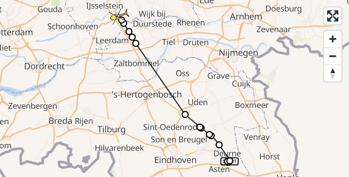 Op zaterdag 26 juli 2025 om 17:07 is er een Politiehelikopter vertrokken van Deurne naar Hagestein. Het gaat om de Politiehelikopter met registratienummer PH-PXZ. De vlucht duurde 27 minuten. Het toestel heeft in die periode 89 kilometer afgelegd met een gemiddelde snelheid van 200 kilometer per uur op een maximale vlieghoogte van 469 meter.