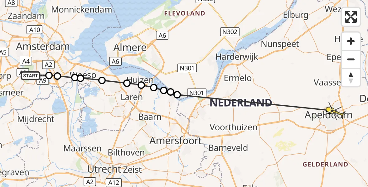 Op zaterdag 26 juli 2025 om 20:17 is er een Politiehelikopter vertrokken van Amstelveen naar Apeldoorn. Het gaat om de Politiehelikopter met registratienummer PH-PXZ. De vlucht duurde 17 minuten. Het toestel heeft in die periode 80 kilometer afgelegd met een gemiddelde snelheid van 281 kilometer per uur op een maximale vlieghoogte van 313 meter.