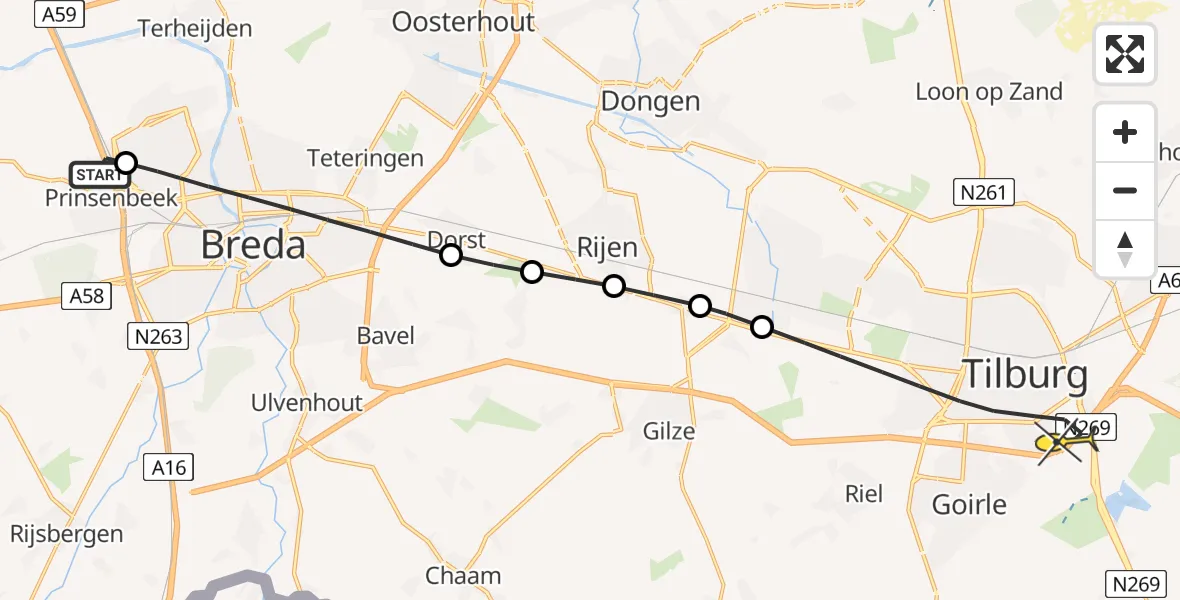 Op zaterdag 26 juli 2025 om 20:29 is er een Traumahelikopter vertrokken van Prinsenbeek naar Tilburg. Het gaat om de Traumahelikopter met registratienummer PH-UMC. De vlucht duurde 9 minuten. Het toestel heeft in die periode 29 kilometer afgelegd met een gemiddelde snelheid van 200 kilometer per uur op een maximale vlieghoogte van 259 meter.