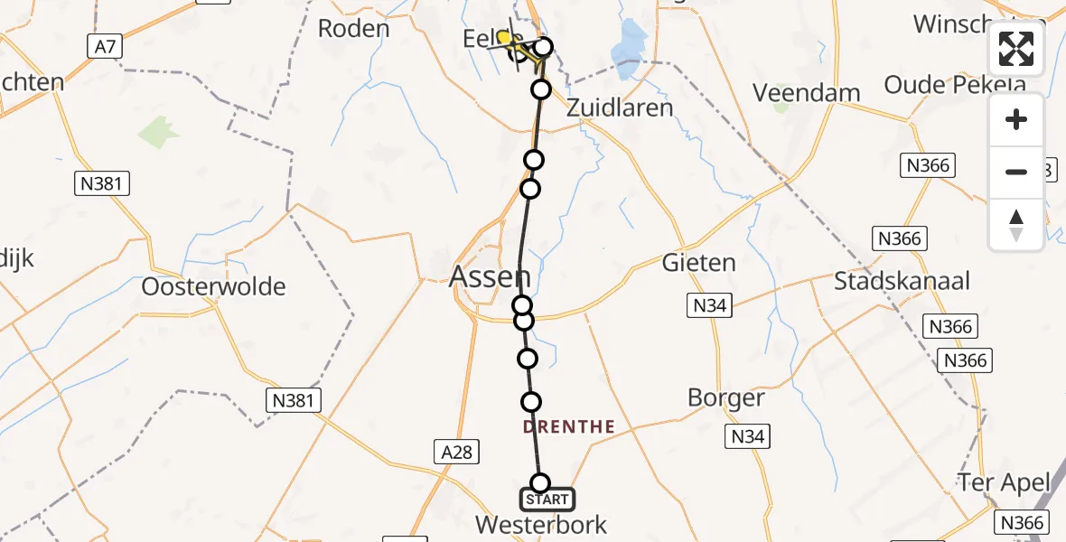 Op maandag 28 juli 2025 om 9:16 is er een Traumahelikopter vertrokken van Westerbork naar Groningen Airport Eelde. Het gaat om de Traumahelikopter met registratienummer PH-DOC. De vlucht duurde 11 minuten. Het toestel heeft in die periode 32 kilometer afgelegd met een gemiddelde snelheid van 170 kilometer per uur op een maximale vlieghoogte van 320 meter.