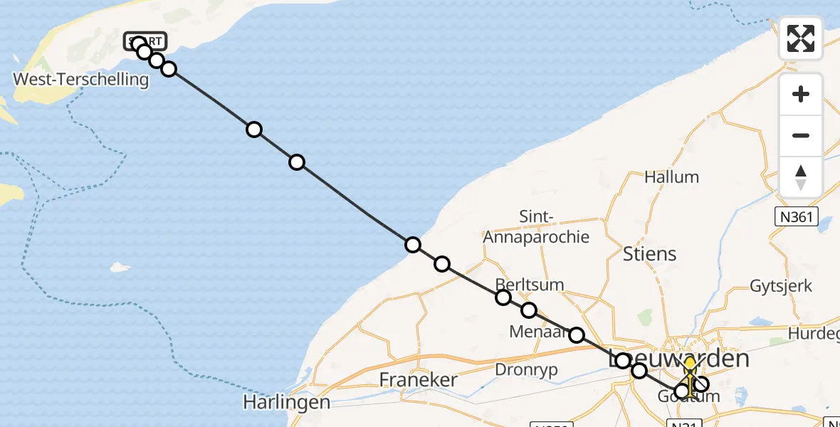 Op dinsdag 29 juli 2025 om 3:54 is er een Ambulancehelikopter vertrokken van Midsland naar Leeuwarden. Het gaat om de Ambulancehelikopter met registratienummer PH-HOW. De vlucht duurde 14 minuten. Het toestel heeft in die periode 45 kilometer afgelegd met een gemiddelde snelheid van 192 kilometer per uur op een maximale vlieghoogte van 282 meter.