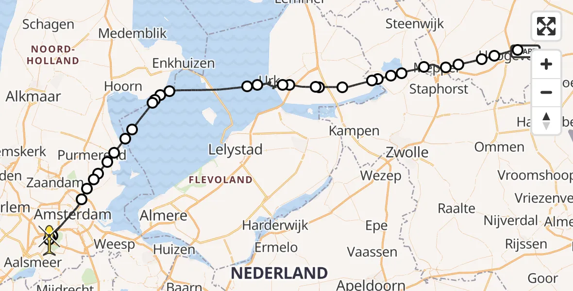 Op dinsdag 29 juli 2025 om 13:01 is er een Politiehelikopter vertrokken van Vliegveld Hoogeveen naar Schiphol. Het gaat om de Politiehelikopter met registratienummer PH-PXD. De vlucht duurde 50 minuten. Het toestel heeft in die periode 146 kilometer afgelegd met een gemiddelde snelheid van 176 kilometer per uur op een maximale vlieghoogte van 419 meter.
