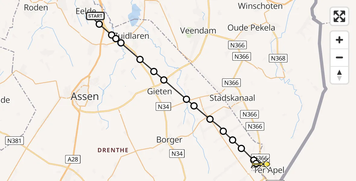Op dinsdag 29 juli 2025 om 23:14 is er een Traumahelikopter vertrokken van Groningen Airport Eelde naar Ter Apel. Het gaat om de Traumahelikopter met registratienummer PH-DOC. De vlucht duurde 12 minuten. Het toestel heeft in die periode 44 kilometer afgelegd met een gemiddelde snelheid van 217 kilometer per uur op een maximale vlieghoogte van 335 meter.