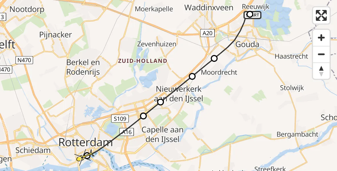 Op woensdag 30 juli 2025 om 12:36 is er een Traumahelikopter vertrokken van Reeuwijk naar Erasmus MC. Het gaat om de Traumahelikopter met registratienummer PH-UMC. De vlucht duurde 7 minuten. Het toestel heeft in die periode 22 kilometer afgelegd met een gemiddelde snelheid van 187 kilometer per uur op een maximale vlieghoogte van 190 meter.