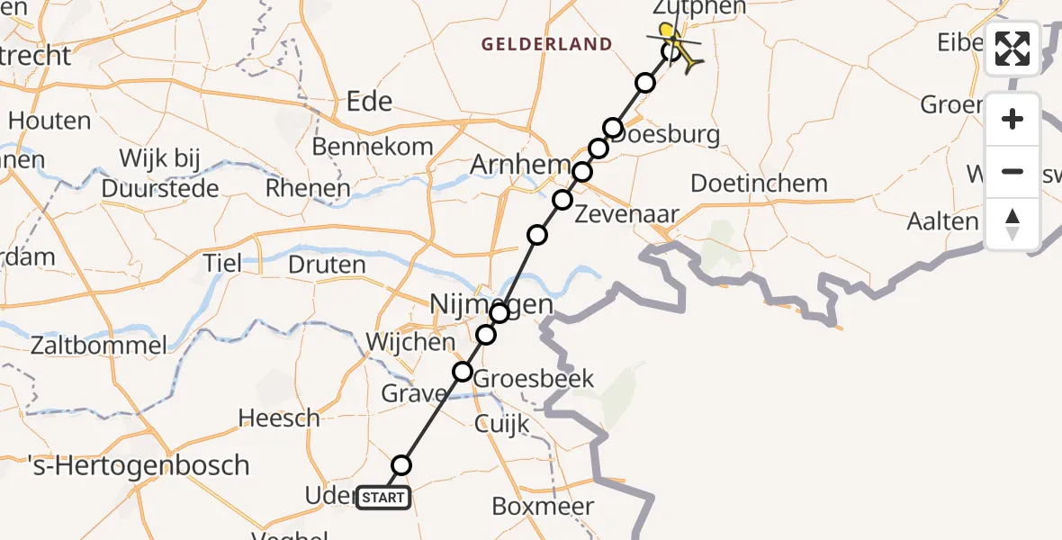 Op woensdag 30 juli 2025 om 19:30 is er een Traumahelikopter vertrokken van Vliegbasis Volkel naar Brummen. Het gaat om de Traumahelikopter met registratienummer PH-LLN. De vlucht duurde 16 minuten. Het toestel heeft in die periode 60 kilometer afgelegd met een gemiddelde snelheid van 221 kilometer per uur op een maximale vlieghoogte van 282 meter.