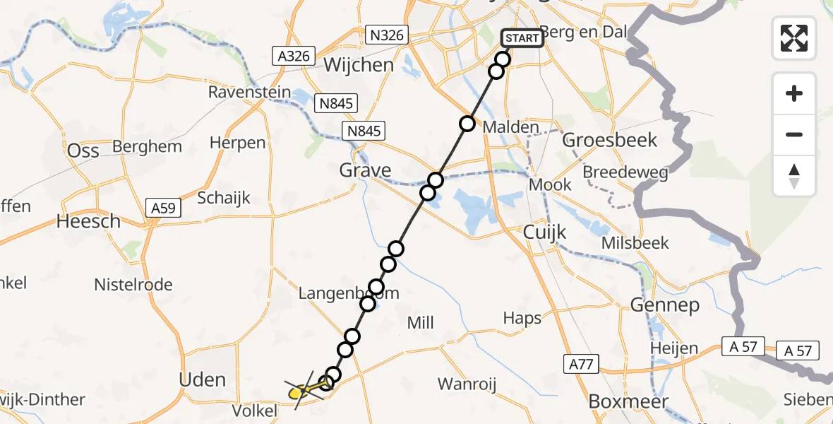 Op donderdag 31 juli 2025 om 1:23 is er een Traumahelikopter vertrokken van Radboud Universitair Medisch Centrum naar Vliegbasis Volkel. Het gaat om de Traumahelikopter met registratienummer PH-LLN. De vlucht duurde 9 minuten. Het toestel heeft in die periode 23 kilometer afgelegd met een gemiddelde snelheid van 153 kilometer per uur op een maximale vlieghoogte van 442 meter.
