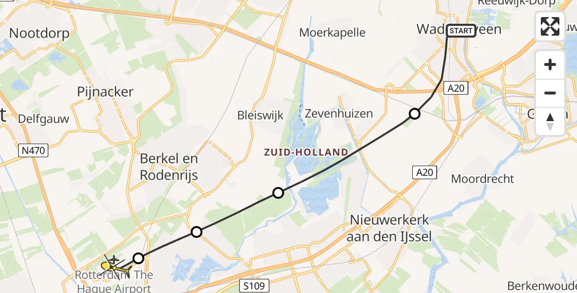 Op vrijdag 1 augustus 2025 om 16:43 is er een Traumahelikopter vertrokken van Waddinxveen naar Rotterdam The Hague Airport. Het gaat om de Traumahelikopter met registratienummer PH-HVB. De vlucht duurde 6 minuten. Het toestel heeft in die periode 19 kilometer afgelegd met een gemiddelde snelheid van 185 kilometer per uur op een maximale vlieghoogte van 312 meter.
