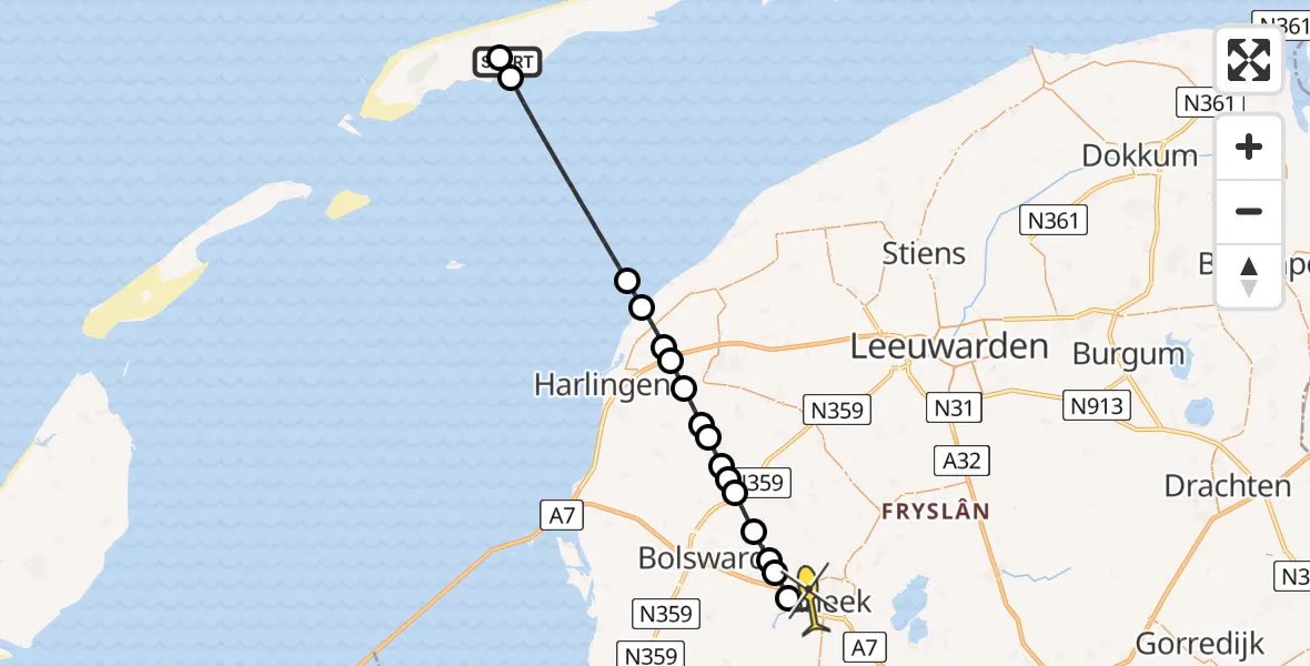 Ambulanceheli naar Vliegbasis Leeuwarden4 aug 21:51 | duur: 19 min. | afstand: 60 km