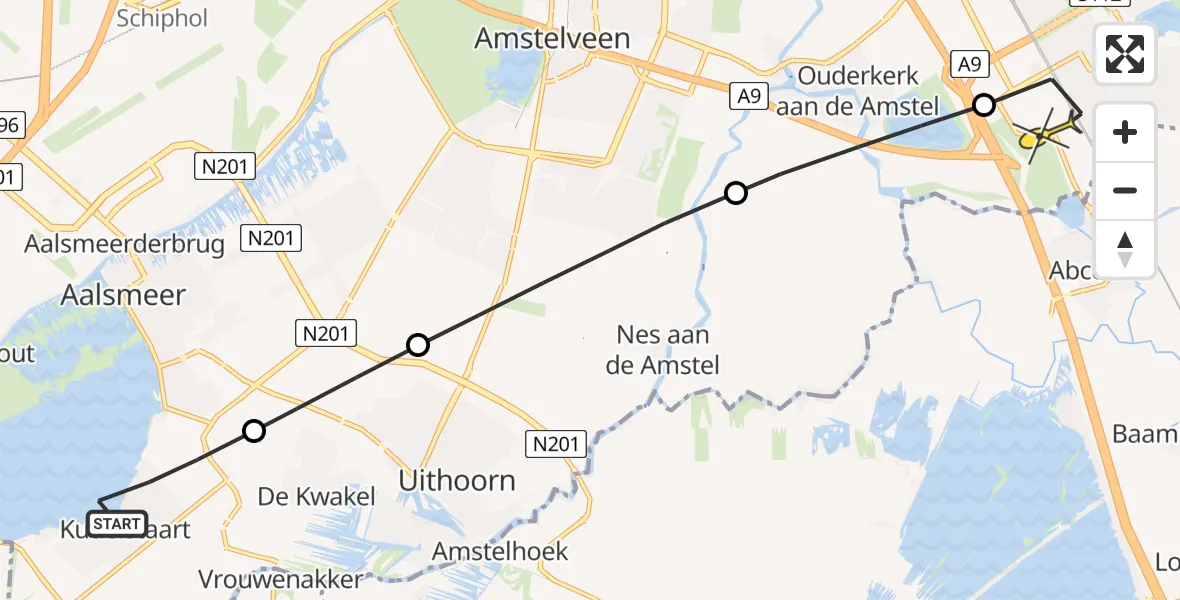 Routekaart van de vlucht: Lifeliner 1 naar Academisch Medisch Centrum (AMC), Mijnsherenweg