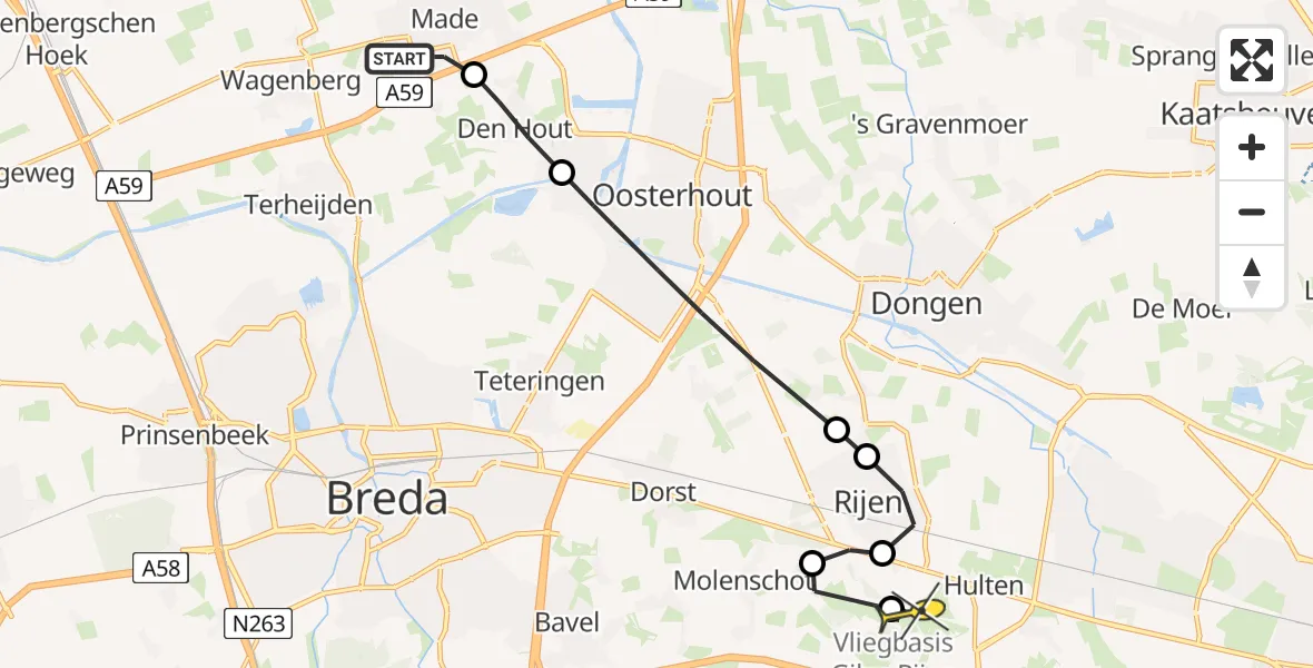 Routekaart van de vlucht: Lifeliner 2 naar Vliegbasis Gilze-Rijen, Moerstraat