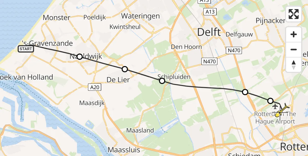 Politieheli naar Rotterdam The Hague Airport22 aug 13:43 | duur: 24 min. | afstand: 67 km
